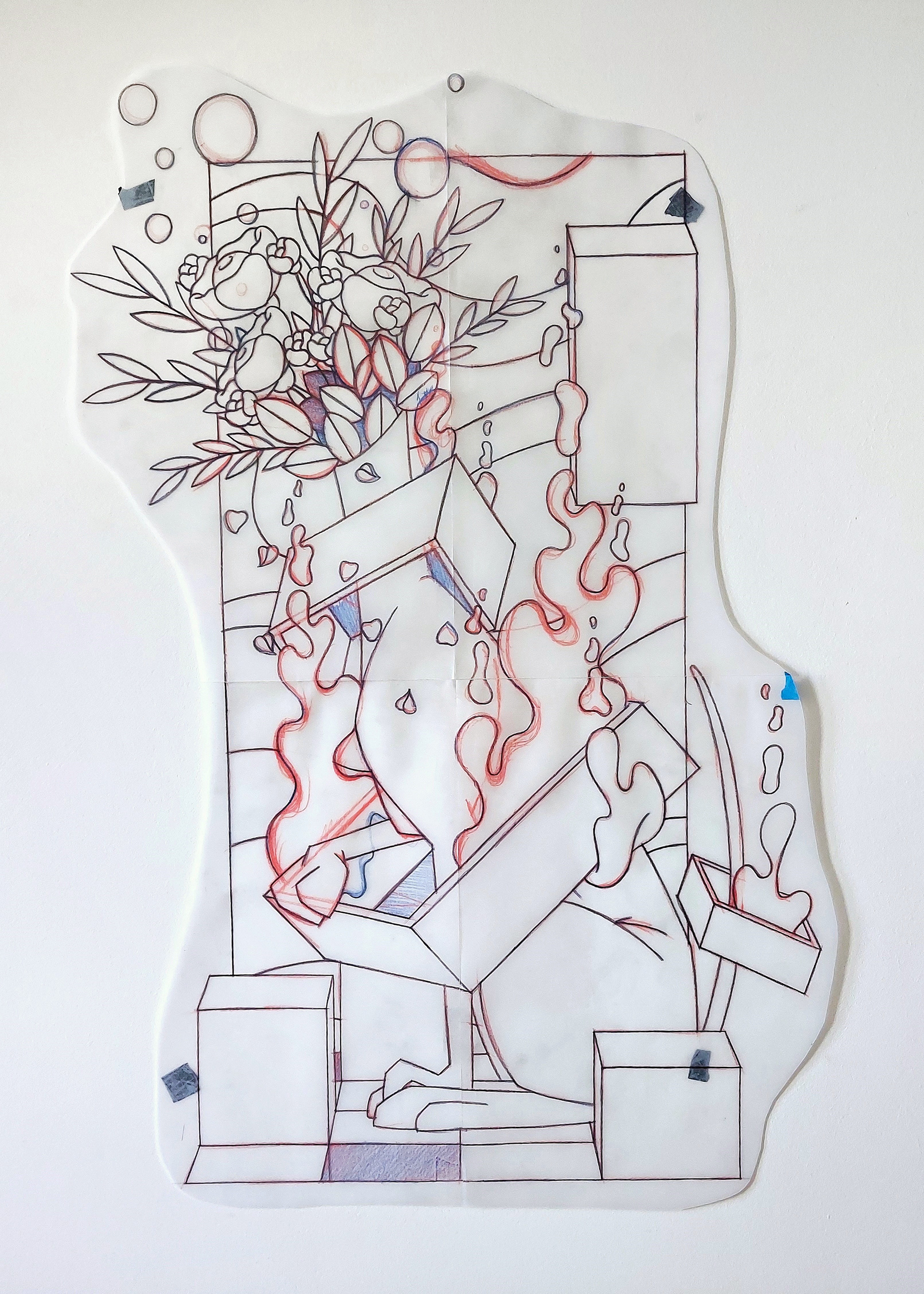 Please note, due to the piece being handpainted with Posca markers, colours may appear slightly fluorescent in the photos below.