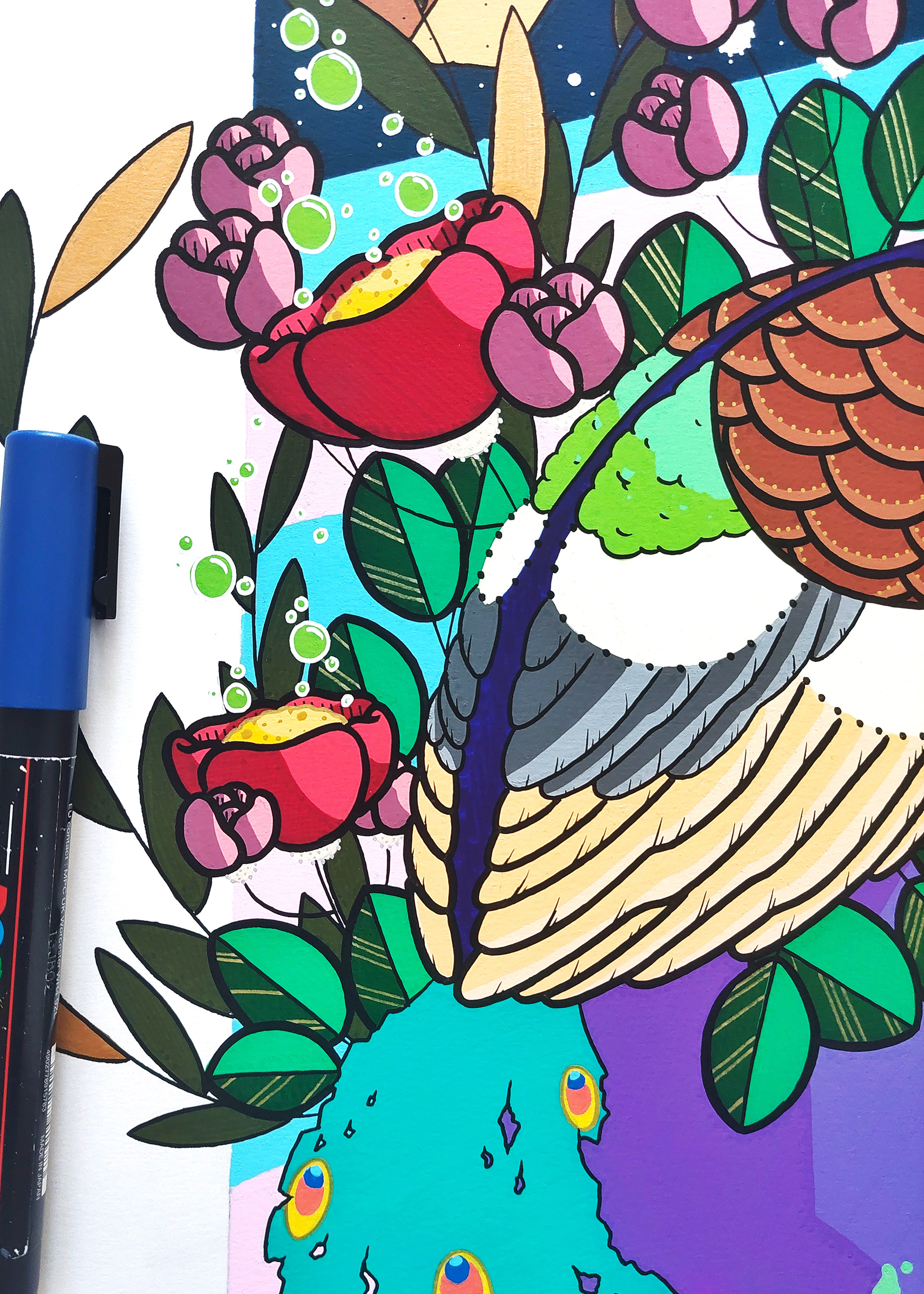 Handpainted with Posca markers on 300 gsm Hot Pressed Acid-Free Paper